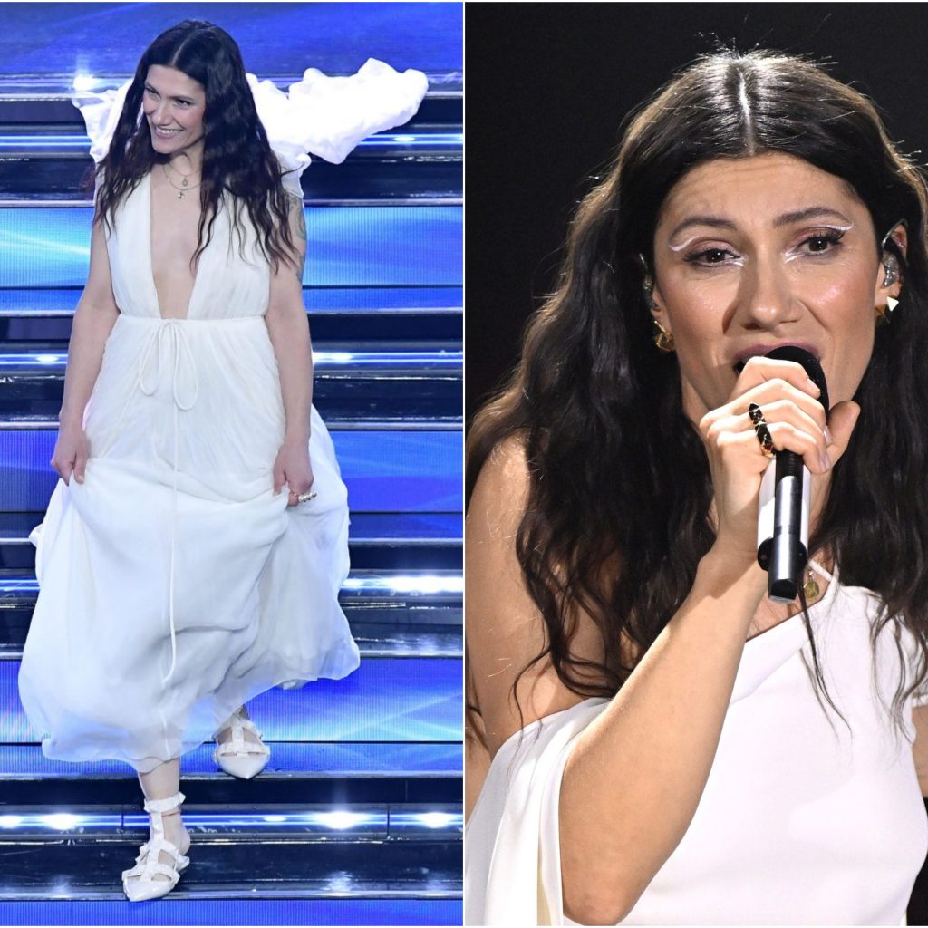 Cinque mise in Total White per celebrare un’icona italiana contemporanea, non a caso in “continuità cromatica” con la filosofia del suo debutto. Tutto perfetto. Gli abiti taglio vivo senza spalline, il blazer taglio maschile e i vestiti da divinità dei boschi sembrano l’interpretazione più matura di quella stessa artista che 21 anni fa preferiva i piedi nudi, perché dall’abito vuole un manifesto della Sua arte, ma senza esserne sovrastata.