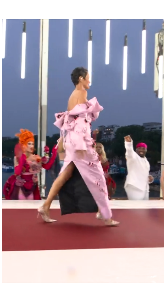 Dietro all’ambiziosa, teatrale ed inedita cerimonia che veste l’intera Parigi e delocalizza il suo centro per la prima volta da uno stadio (narrando così in mondovisione la sua storica grandeur attraverso la spettacolare iconicità della propria architettura), si insinua ed impone smaniosa la moda liquida e gender free promossa da Daphné Bürki, nella vita attrice, direttrice creativa e giurata del programma televisivo Drag Race France, un messaggio lanciato al mondo di una Francia che dice sì alla libertà ed all’amore ma altresì un vivido no all’intrinseco (in)tramontabile stile del DNA dei suoi couturièrs.